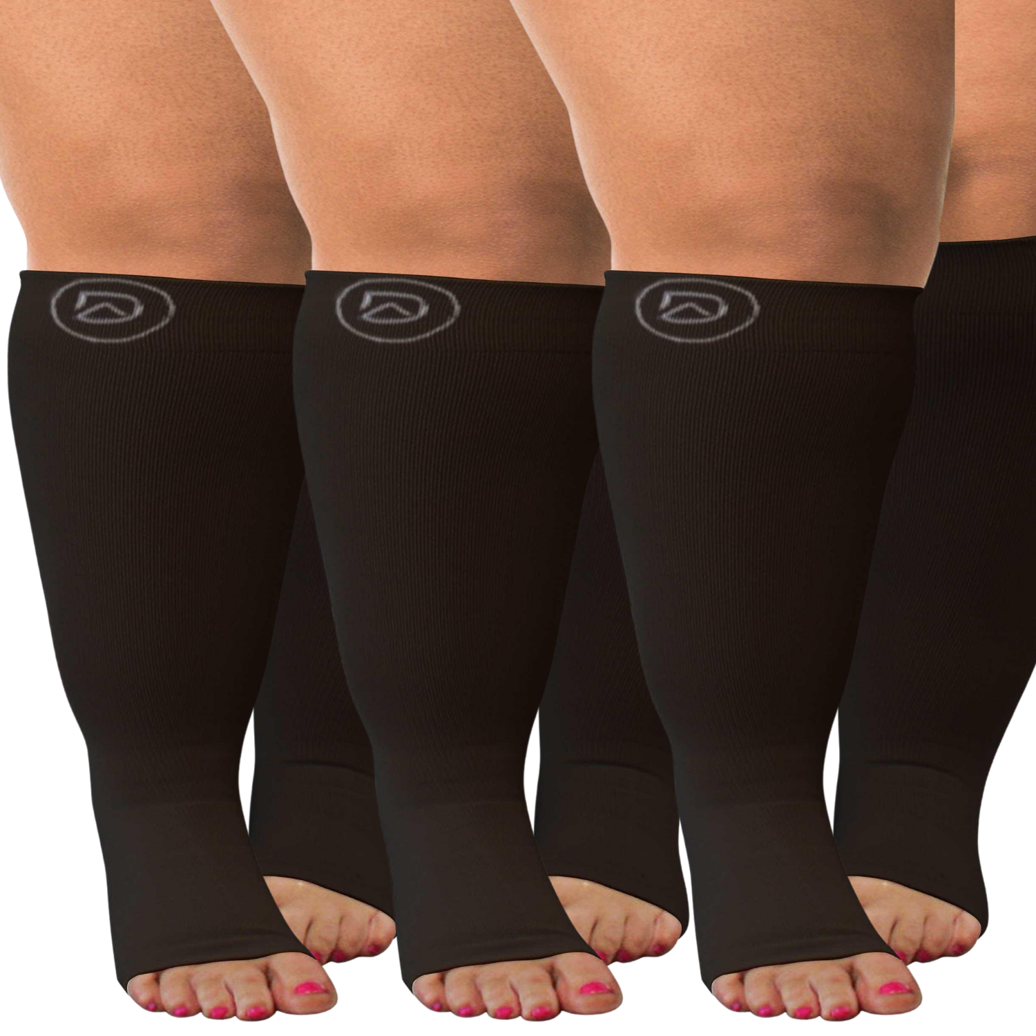 Plus Size Wide Calf Toeless Compression Socks 20–30 mmHg 3 Pair Multipack